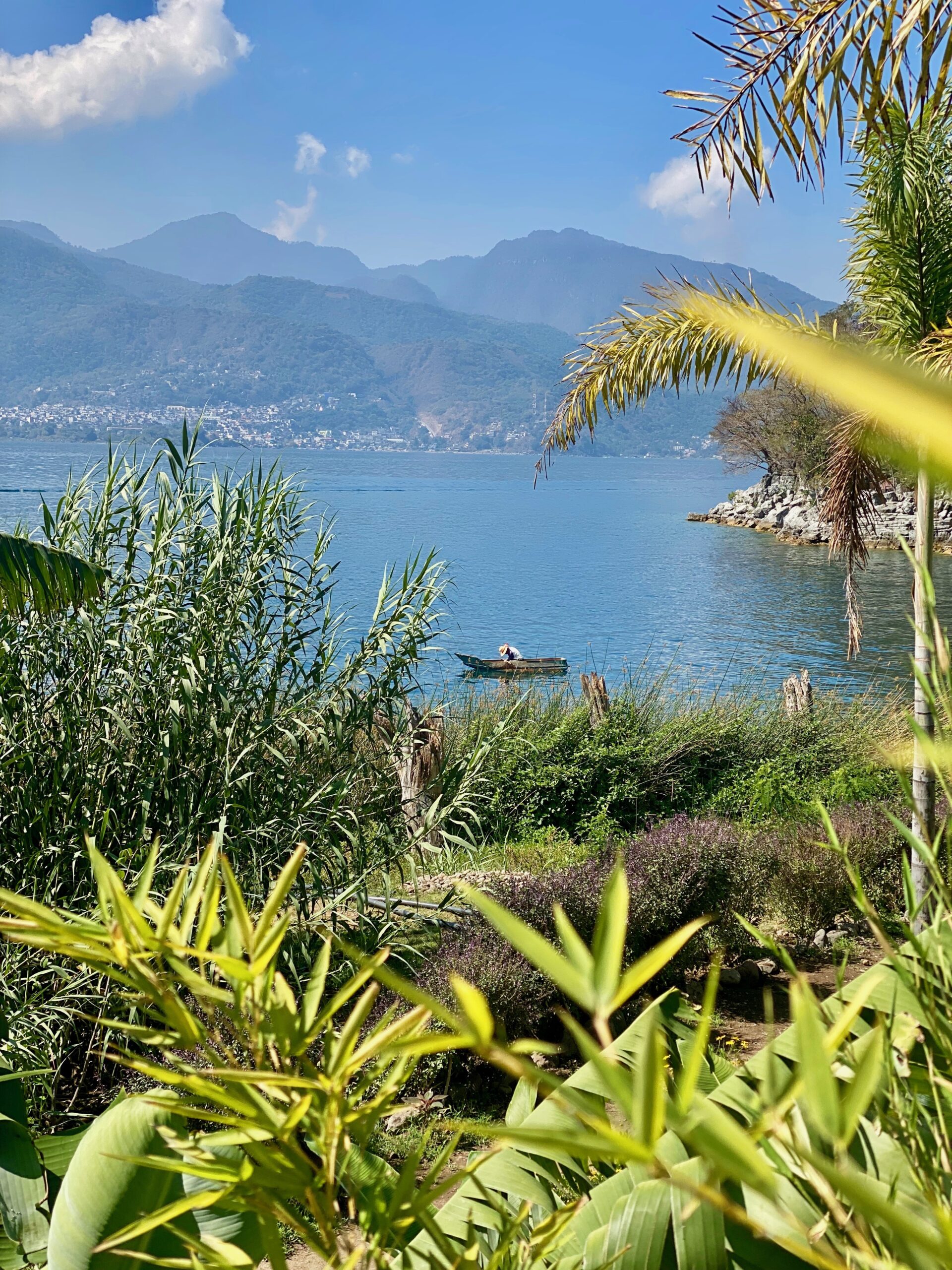 Der Lago Attitlan befindet sich auf 1570 M.ü.Meer und dementsprechend waren die Temperaturen in der Nacht schön kühl, manchmal auch schon kalt. Man hat bei klarer Sicht eine atemberaubende Aussicht auf die aquamarinfarbene Oberfläche des Sees auf dem rustikale Fischerboote schippern. Die fruchtbaren Hügel schmücken die Szenerie und über allem erheben sich die 3 Vulkane Toliman, Atitlan & San Pedro und verleihen der gesamten Region eine geheimnisvolle Schönheit.Rund um den See gibt es viele verschiedene indigene Dörfer mit Mayakultur.