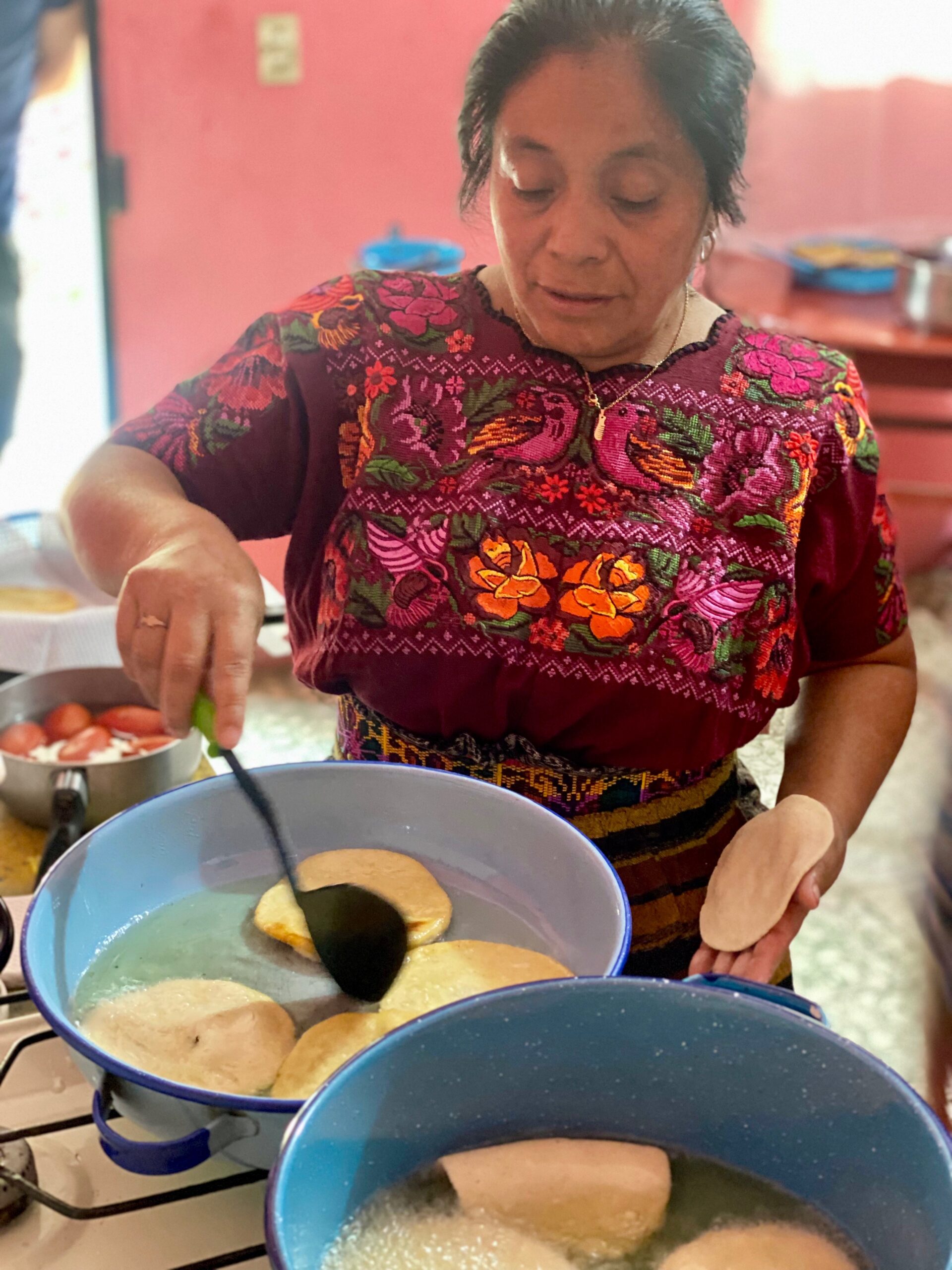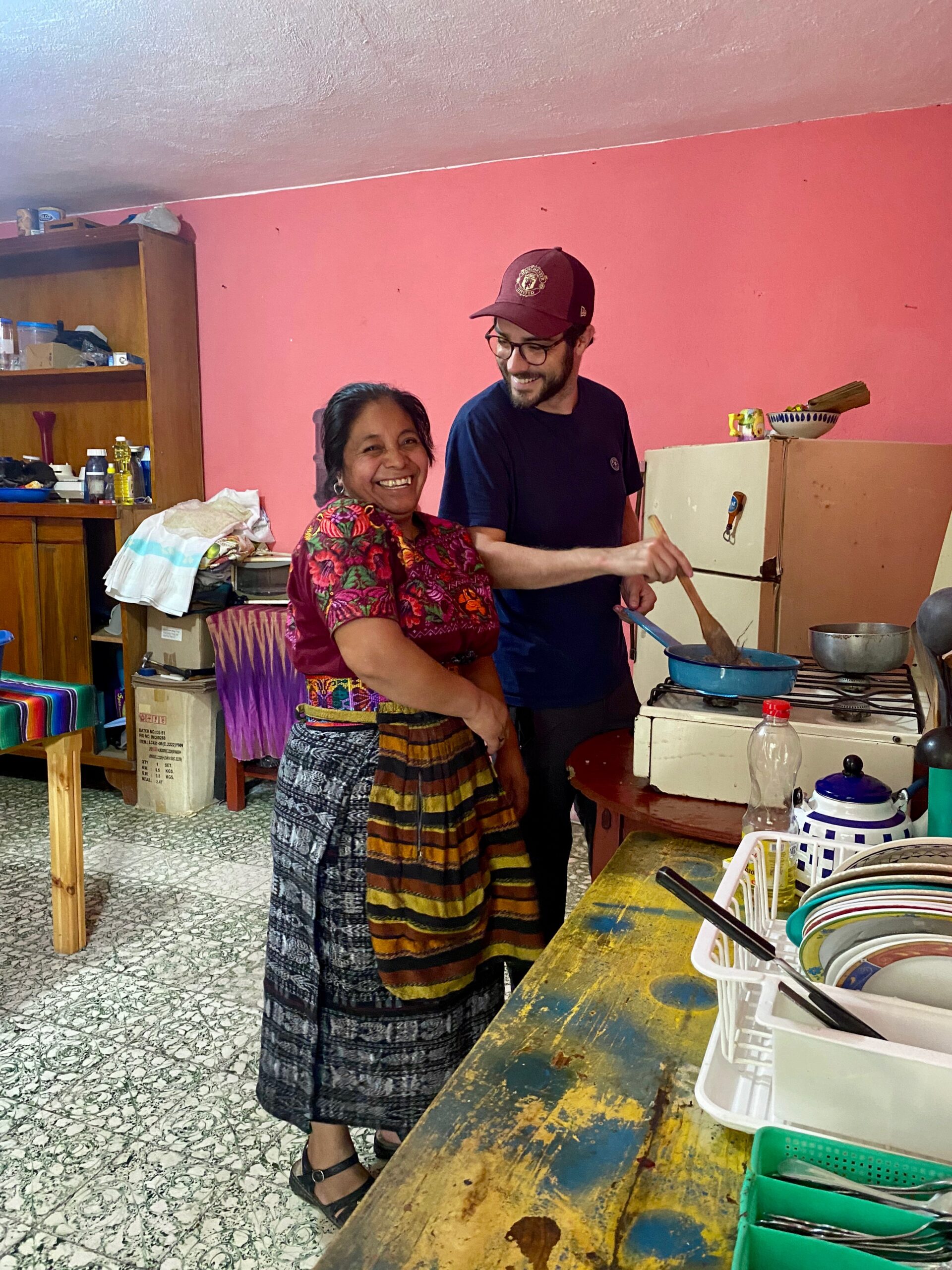 Nach 2 Wochen büffeln hat man aber einen deutlichen Unterschied gemerkt und es hat sich definitiv ausgezahlt für unsere weitere Reise!Wir haben in den 2 Wochen Sprachschule bei einer einheimischen Familie gelebt was auch ein interessanter Einblick war.Wir haben dort definitiv die besten einheimischen Gerichte gegessen und das um einiges besser als in den Restaurants. Angelica kochte uns typische Speisen wie z.B. Frijoles y huevos revueltos (Bohnen mit Rührei) & Rellenos de Pacaya con arroz. Auch in der Sprachschule hat Nicolas unser Lehrer, eine Cooking Class organisiert wo wir lernen durften wie man selber Enchiladas Guatemalteca kocht und zubereitet.