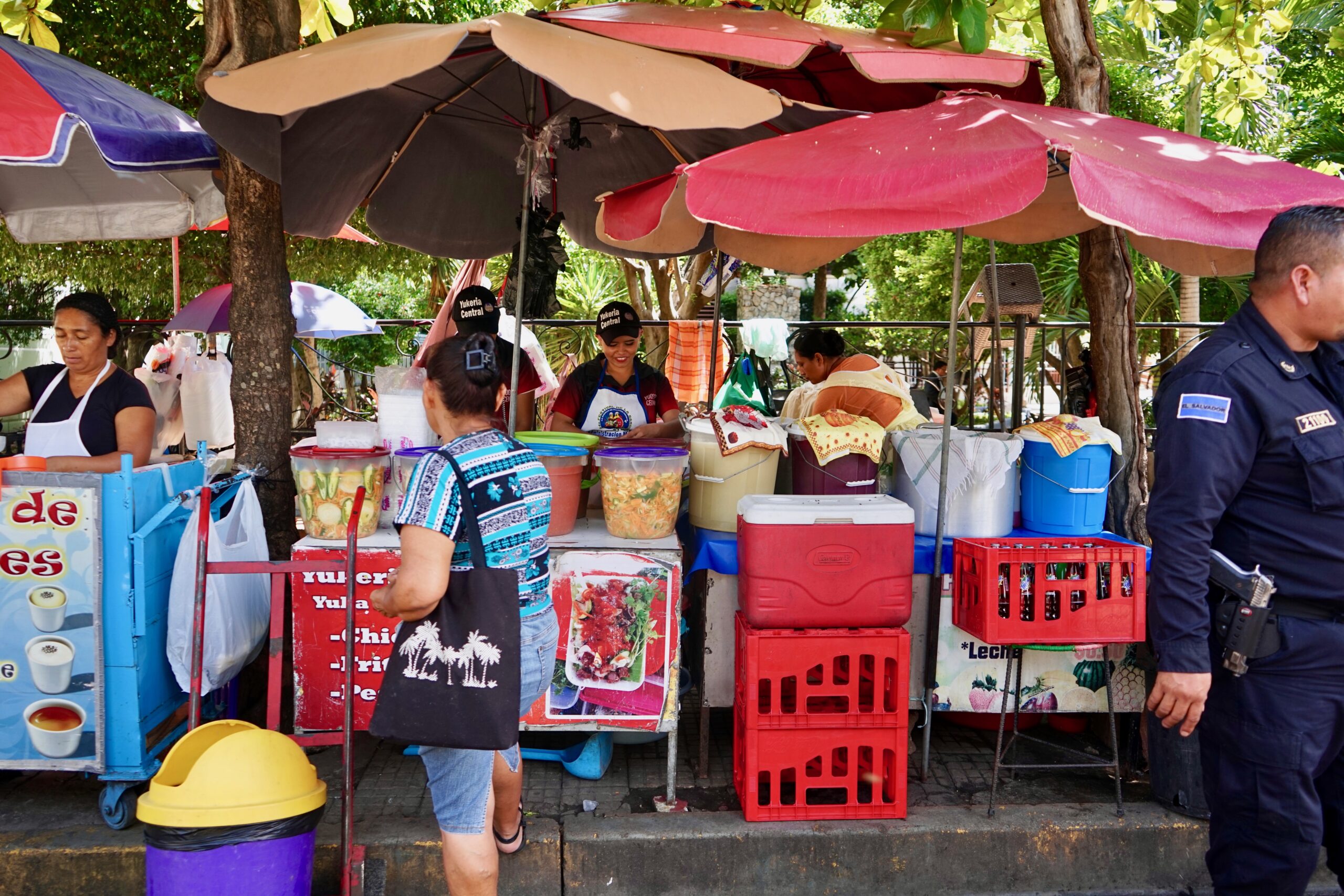 El Salvador war die letzten Jahre immer wieder in den Schlagzeilen weil sie durch die Bandenkriminalität, hauptsächlich die MS-13 & Barrio-18, die 2. Höchste Mordrate Weltweit hatten. Bukele der seit 2019 als Präsident im Amt ist, hat im März 2022 im Land den Ausnahmezustand ausgerufen und hat seither nach monatlichen Abstimmungen im Parlament das Gesetz in der Hand und betreibt eine Diktatur. Er hat der Bandenkriminalität den Kampf angesagt und hat 75 000 mutmassliche Mitglieder der Maras hinter Gitter gebracht. Rund 2 Prozent der erwachsenen männlichen Bevölkerung sitzt hinter Gittern. Dafür liess er extra das grösste Gefängnis von zentral & Südamerika bauen das Platz hat für 40 000 Insassen. Nun hat El Salvador nicht mehr die 2. Höchste Mordrate, dafür aber die weltweit grösste Gefängnispopulation. Bukele wird in ganz Zentralamerika als Held gefeiert und sehr viele Einheimische in anderen Ländern mit denen wir ins Gespräch gekommen sind haben von ihm geschwärmt. Das war auch ein Grund wieso wir El Salvador unbedingt bereisen wollten und wussten dass es nun für uns sicher sein wird. Das Land hat sehr viel zu bieten, schöne Landschaften, Vulkane und berühmte Strände an denen erst gerade die Surfmeisterschaften ausgerichtet wurden. Die Menschen sind die liebsten und hilfsbereitesten die wir in ganz Zentralamerika angetroffen haben und wir haben uns immer sehr willkommen gefühlt. Trotzdem schüchtern einen die vielen Razzien auf den Strassen und die immerweilige Präsenz der Polizei und des Militärs in der Öffentlichkeit ziemlich ein. Vor jedem Laden, vor jeder Bank, vor jeder Schule steht ein bewaffneter Polizist mit einer riesen Knarre, den Finger am Abzug. Kleine Kioske sind immer vergittert wenn sie nicht bewacht werden, das ist hier die Realität im Alltag. Alle Mauern sind mit Stacheldraht umrandet und man sieht deutlich dass hier lange kein Leben in der Öffentlichkeit stattgefunden hat. Erst seit etwas mehr als einem Jahr, seit Bukele den Notzustand ausgerufen hat, trauen sich die Menschen wieder ein Leben in der Öffentlichkeit zu haben. In Pärken zu sitzen, draussen zu spielen und zu musizieren ohne Angst davor zu haben von den Maras erschossen zu werden. Ich fand die Zeit in Santa Ana sehr eindrucksvoll mit vielen intensiven Eindrücken, zum Teil auch beängstigend, aber es zeigt mir wieder wie gut wir es haben und wie dankbar wir sein dürfen!