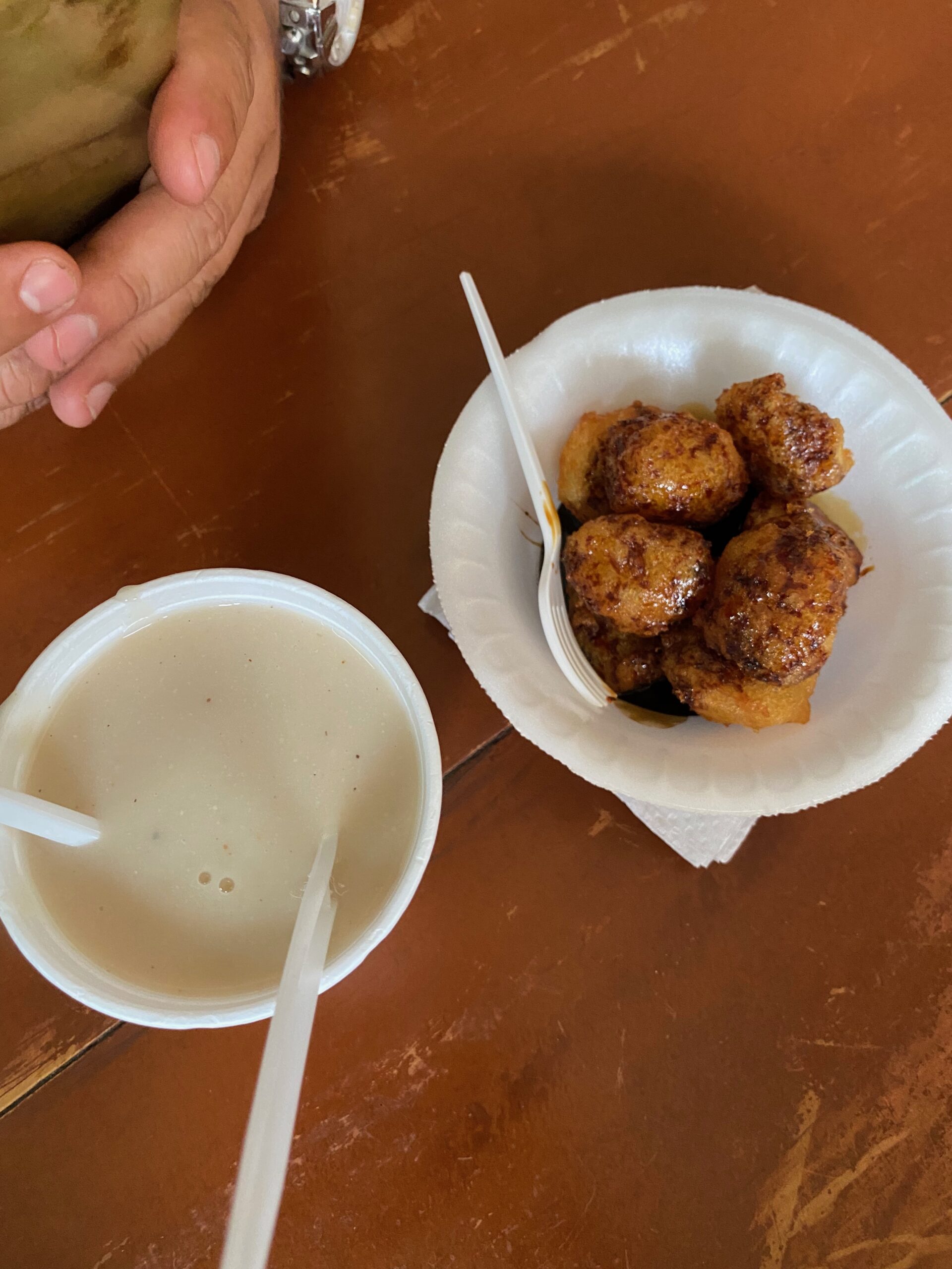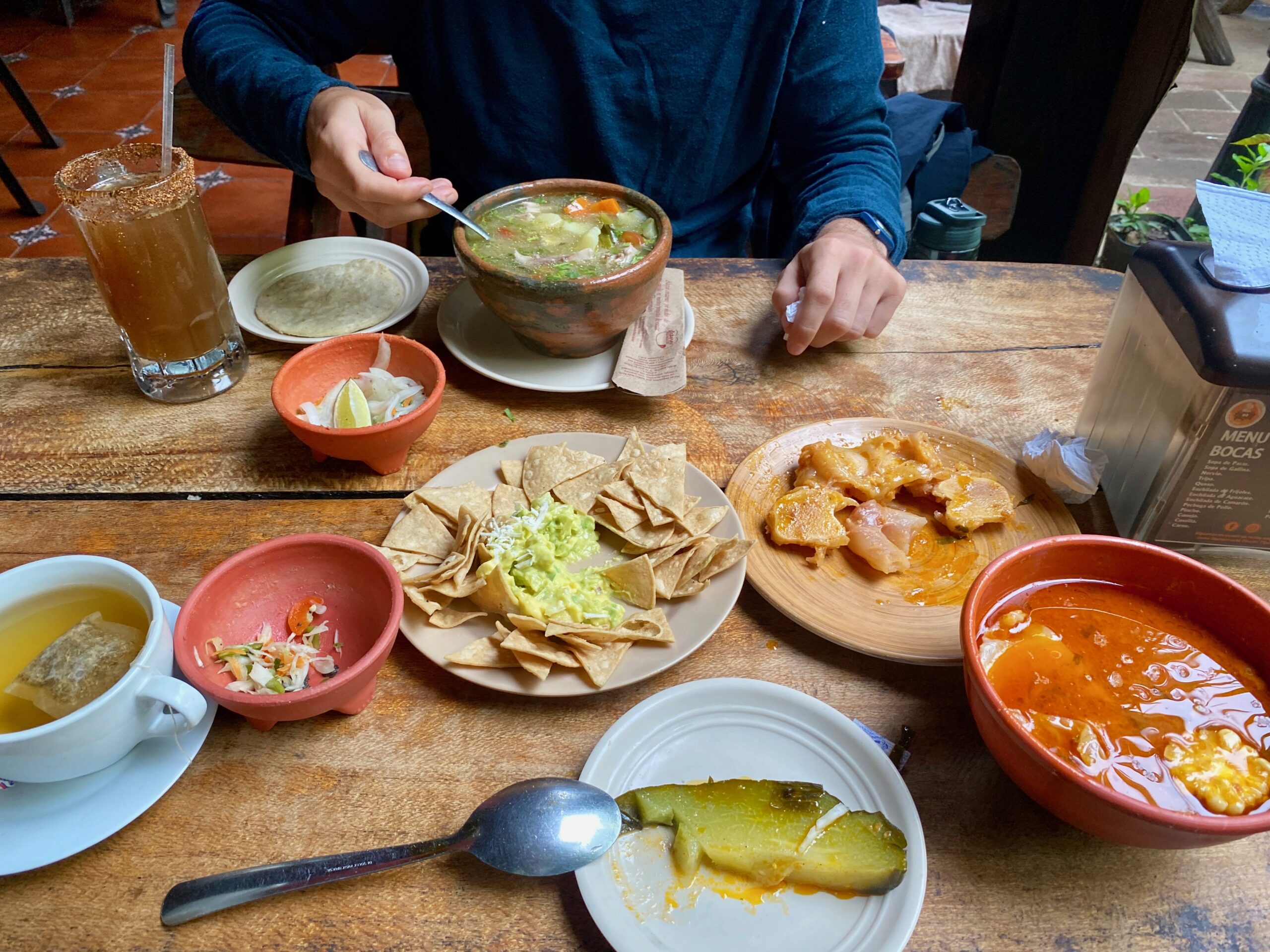 Am 2. Tag nach unserer Ankunft hatte ich etwas Magenprobleme und Cirill hat aus diesem Grund für uns extra ein Restaurant gesucht dass viele Suppen als Spezialität angeboten hat. Als ich die Karte sah, ist mir sofort die Sopa de Patas ins Auge gestochen…ach, wie herrlich, jetzt eine leckere Kartoffel Suppe für meinen angeschlagenen Magen! Als diese jedoch serviert wurde, sah es nach allem anderen aus als Kartoffel. Die Suppe hatte eine dicke Ölschicht oben drauf und Gemüse Stücke drinn und irgend etwas komisch fleischiges dass ich nicht identifizieren konnte… Als ich beim Kellner nachfragte ob das meine Kartoffel (im spanischen Patatas!) suppe sei, lachte er und erklärte mir dass ich die Sopa de Patas bestellt hatte, also Kuhfuss Suppe! 😉 Ist hier ein sehr traditionelles und beliebtes Gericht dass jeden Samstag frisch gekocht wird. Cirill war mutig und tauschte freundlicherweise mit mir seine Hühnersuppe und ass die Kuhfusssuppe.